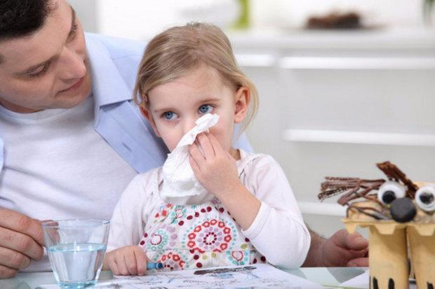 - обильные выделения из носа, сначала водянистые и прозрачные, затем — густые, зеленого цвета;
