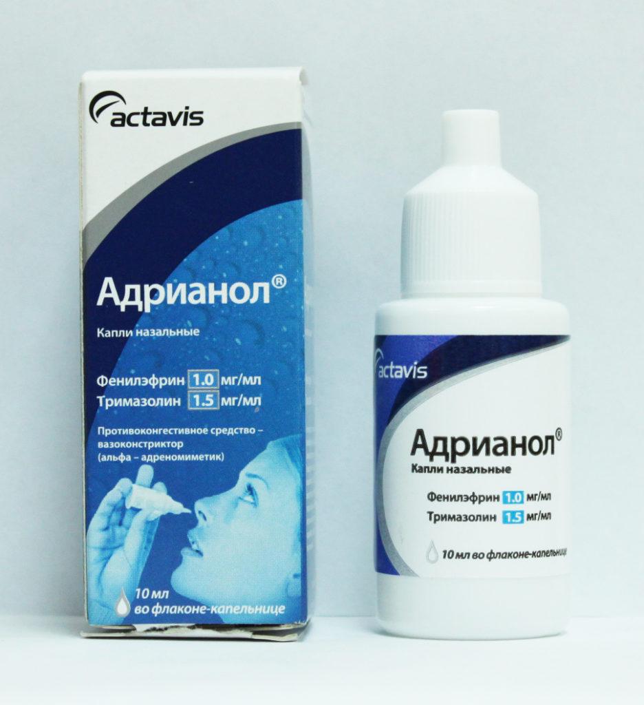 Дополнительные вещества придают устойчивость основным компонентам, создают вязкую консистенцию препарата, оказывает легкий антисептический эффект, предохраняют слизистые от пересушивания. Препарат выпускают в двух формах: детской и взрослой. В Адрианоле для взрослых фенилэфрина содержится 0,012 гр, тримазолина – 0,01 гр. В детской форме концентрация активных компонентов снижена вдвое.