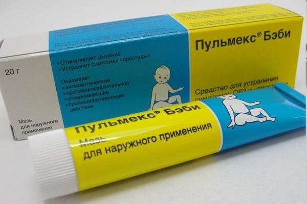 - Пульмекс Беби. Состоит из масел розмарина, эвкалипта и перуанского бальзама. Хорошо действует в качестве отхаркивающего средства, оказывают антисептическое и противовоспалительное действие. Мазь быстро впитывается и не имеет резкого запаха. Детям с 6 месяцев до года мазь рекомендуют использовать раз в день, с года можно наносить дважды в день.