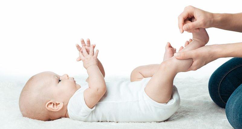 - Внутренняя область голени. Начинать рекомендуется с поглаживаний, затем подушечками четырех пальцев совершать кругообразные движения. Для этого участка лучше перевернуть ребенка на спину. Уделите этому 4-5 минут.