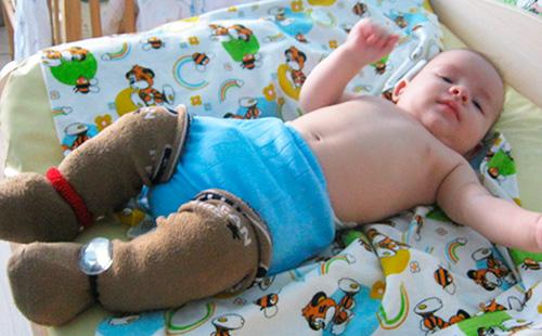 - Массаж мышц голени. Ребенка нужно положить на живот, под голеностоп поместить валик или подушку. Мышцы нужно хорошо размять, поглаживая, а потом совершая продольные и поперечные движения в течение нескольких минут.