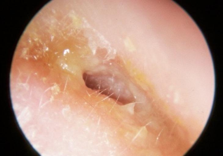 - отоскопию — осмотр барабанной перепонки, при помощи которого легко обнаружить признаки патологии (утолщение, втянутость, перфорацию перепонки, наличие гноя в слуховом проходе);