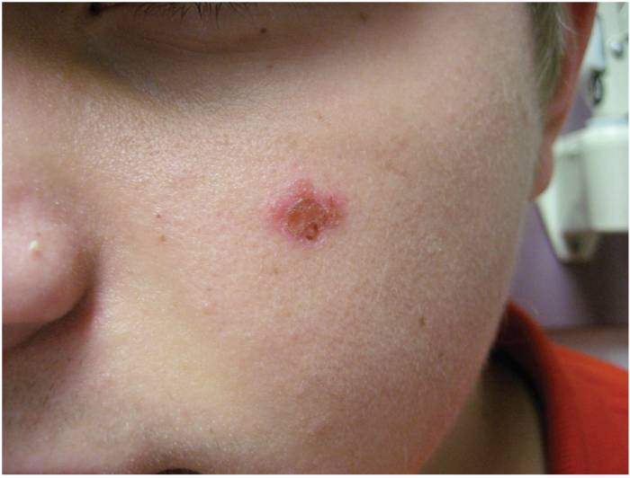 Импетиго – это инфекционное заболевание кожи, проявляющееся через гнойные высыпания красноватого цвета. Впоследствии гнойники преобразуются в струпья и приобретают медовую окраску. Наиболее часто высыпания локализуются на лице, а также на тех кожных участках, которые чаще всего подвергаются различного рода повреждениям. При этом скорость развития болезни во всех случаях различна, у некоторых детей импетиго развивается очень быстро, а у других наоборот, медленно.