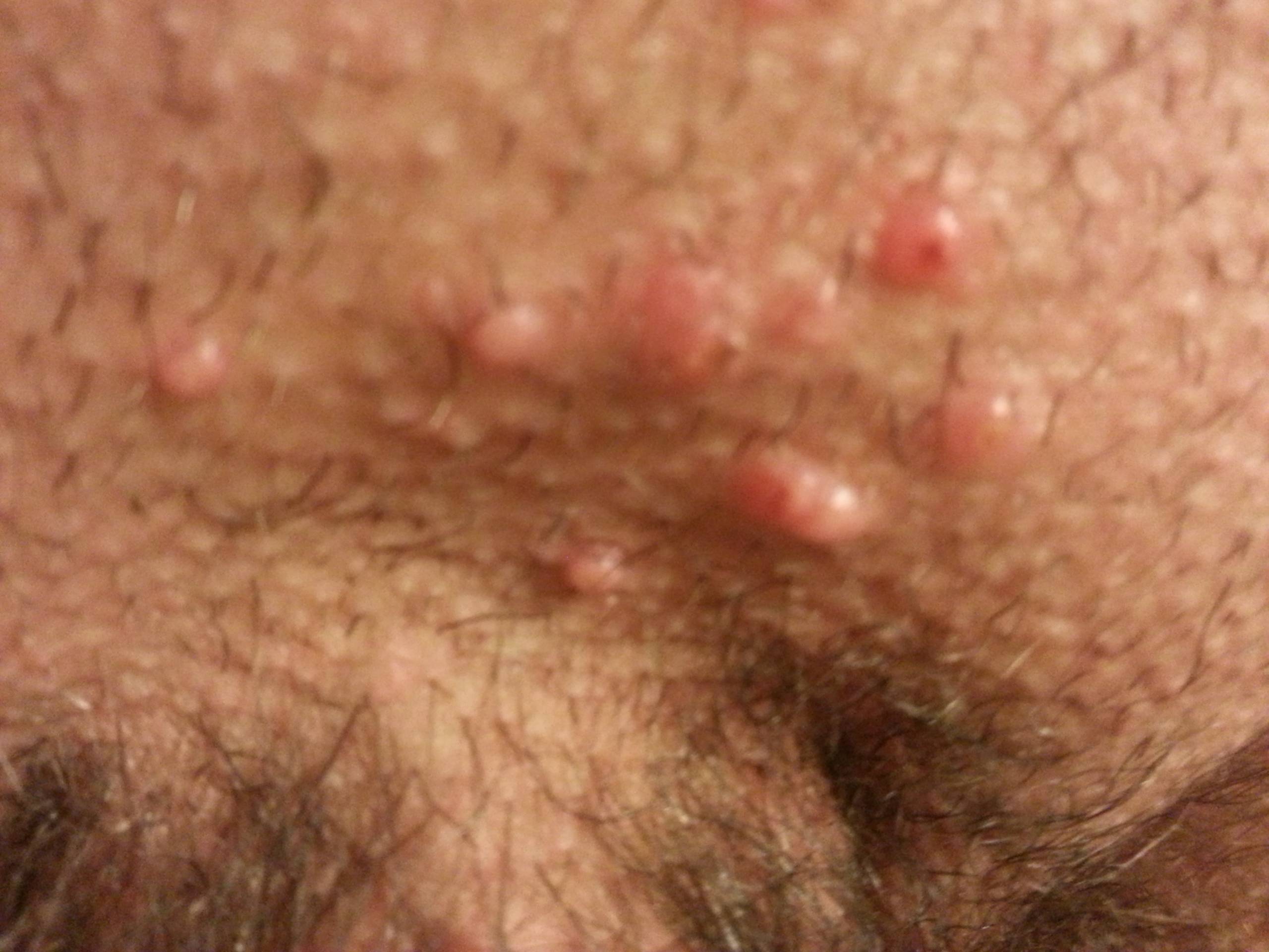 Снижение защитных функций кожи приводит к болезненным трещинам, которые появляются даже при малейших травматизациях. Возможно увеличение и уплотнение лимфоузлов, болезненные ощущения при мочеиспускании и половом акте. В запущенных формах отмечается появление мелких гнойничков с мутной жидкостью.