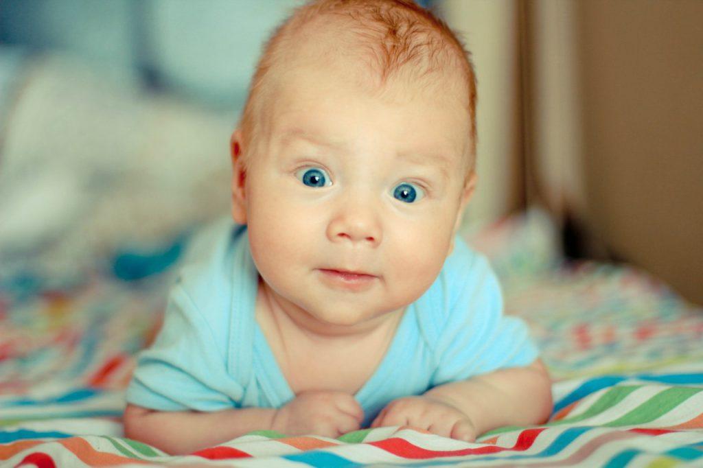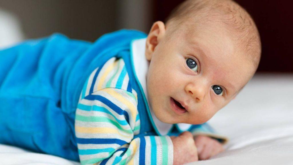 - К 4 месяцам здоровый ребенок должен уверенно держать голову и поворачивать ее в разные стороны. Лежа на животе, он будет стараться поднимать не только шею и плечики, но и часть туловища.