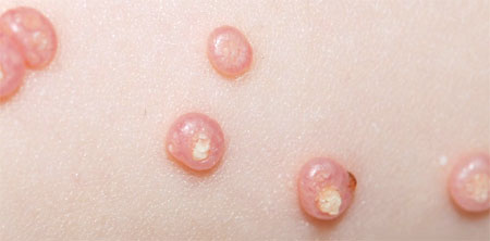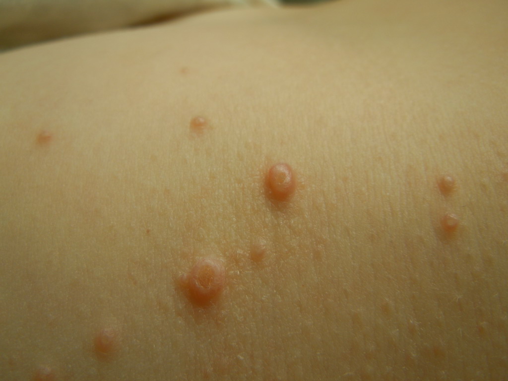 Отличительной чертой контагиозного моллюска считаются узелки округлой формы, из которых легко выдавливается жидкость схожая с творожной консистенцией.