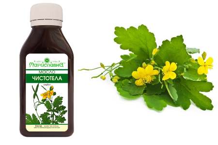 Масло чистотела от грибка ногтей можно приобрести в аптеке (благо цена у него не большая и можно себе позволить). Идеально подходит в сочетании с перекисью водорода, которая гарантирует обеззараживающий эффект, а масло обеспечивает «выжигающий» для имеющейся инфекции. Перед началом процедур ноги (или руки) хорошенько распаривают на протяжении 15 минут, вытирают насухо, пораженные участки ногтей обрабатывают перекисью до полного ее высыхания, далее смазывают маслом чистотела.