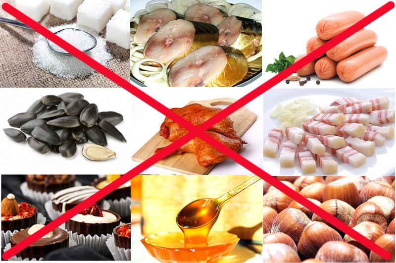 - копчености, горькие продукты и приправы, жирные блюда;