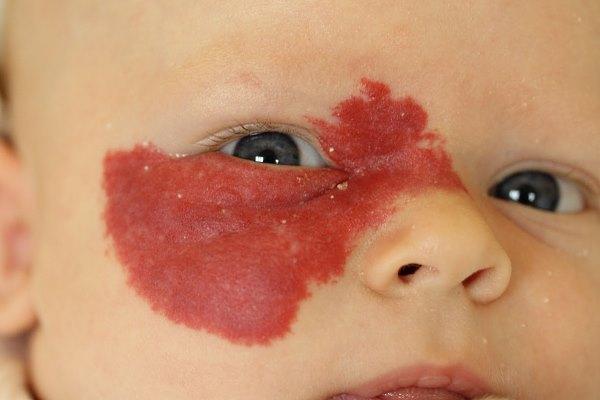 Иногда красные пятна или небольшие точки, мешки образуются только у одного глаза. Такой симптом может свидетельствовать о том, что он был травмирован — попал инородный предмет, малыш ударился, тер его ручкой или пострадал от укуса насекомого. Выпуклое пятнышко ярко-красного цвета у глаза с одной стороны может оказаться признаком гемангиомы. Асимметричная краснота может появляться при папилломе.