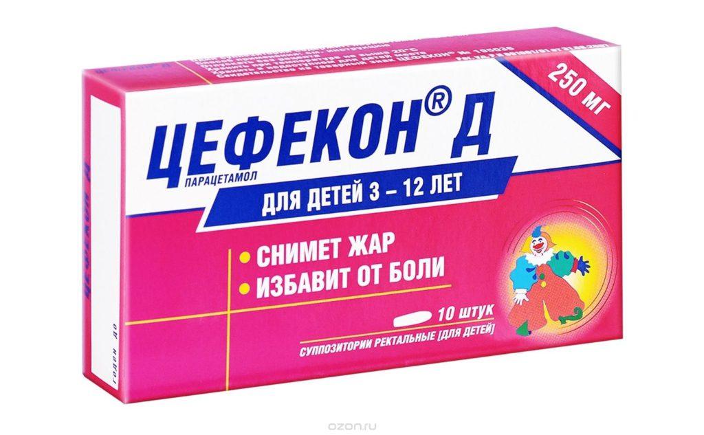 | Цефекон – Д | Основным действующим веществом является парацетамол. | Введение осуществляется ректально. Перед применением следует разогреть свечу в ладонях. Доза: 10-15 мг на 1 кг массы тела ребенка. Действует до 6 часов. | Рекомендован для обезболивания и снижения температуры. |