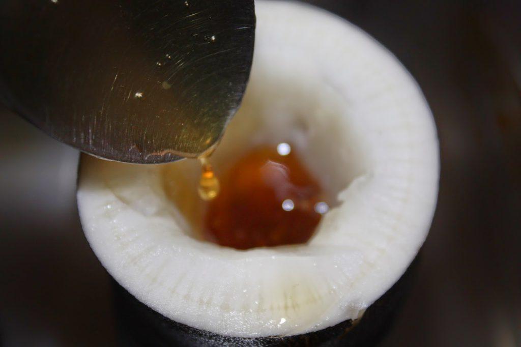 - Редька. Для лечения кашля используется следующий рецепт: в крупной редьке вырезается глубокое конусообразное отверстие, внутрь вливается чайная ложка меда. Когда вырезанное отверстие полностью пропитается и заполнится соком, жидкость нужно будет пить по 1 ч.л. 3-5 раз в день.