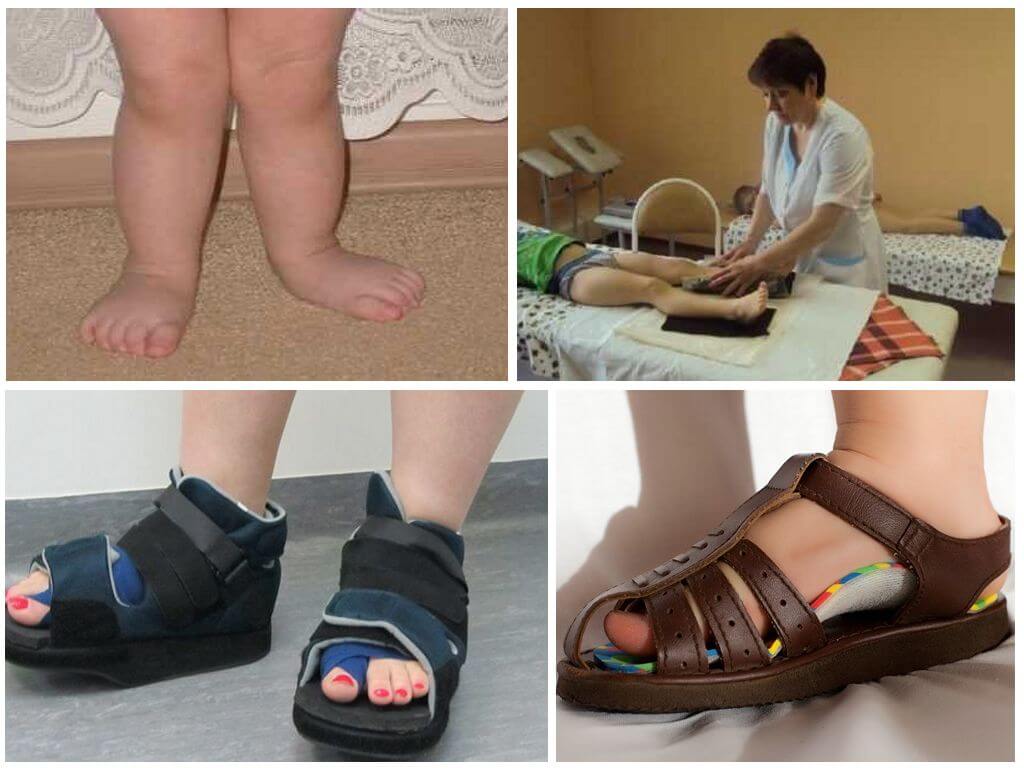 Массаж голеней и стоп, тепловые процедуры (грязевые аппликации, озокерит, парафин), корригирующие упражнения для формирования свода стоп, лечебная гимнастика, лечебное плавание, электростимуляции, гипсовые коррекции стопы, ношение ортопедической обуви.