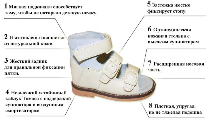 Если у ребенка проблемы с правильной постановкой стопы, особое внимание следует уделить выбору обуви. Она должна отвечать следующим требованиям: