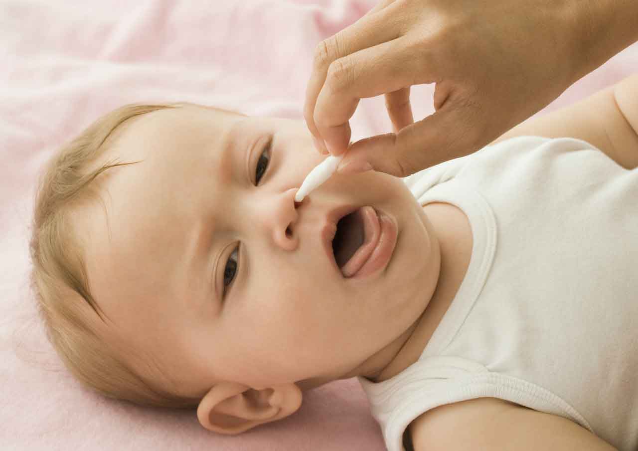 Для очищения носа новорожденному используют ватные турунды, смоченные жидким парафином. Конец жгута нужно ввести в носовой ход и прокрутить несколько раз, то же самое проделать с другой ноздрей. При необходимости повторить действия еще раз. Мама должна действовать уверенно и точно, иначе малыш будет капризничать и уворачиваться.
