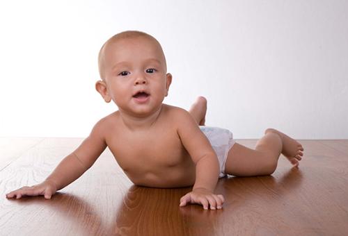 - Положите ребенка на живот и уприте его ножки об себя. Придерживая ребенка под ножки и грудь, попытайтесь его поднять. У ребенка должна напрягаться спинка и ягодицы. Упражнения выполняется 2-3 раза с перерывами на отдых.