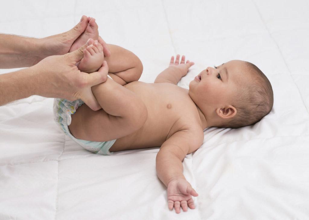 Если малышу больше 2 недель, чаще выкладывайте его на животик. Также полезно делать зарядку, некоторые упражнения могут ускорить пищеварение. Можно прижимать коленки к груди, а затем выпрямлять ножки, или поочередно прижимать ножки к груди (сначала правую, потом левую).